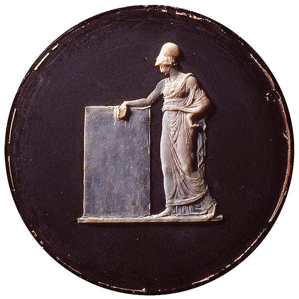 Si tratta di un particolare per il progetto della medaglia, mai realizzata, per la East India Company. Modello preparatorio simile, per la figura della Britannia, ai cat. nn. 108, 109 e 110. Foro in alto al centro per il fissaggio. Lavoro non terminato