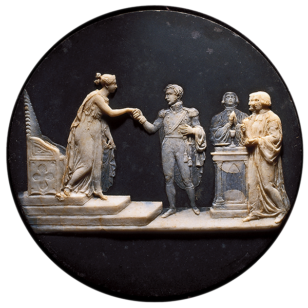 Probabile modello per il rovescio della medaglia, mai realizzata, per il matrimonio della regina Vittoria con il principe Alberto di Sassonia-Coburgo-Gotha, avvenuto nel 1840. Lavoro ultimato, evoluzione del modello cat. n. 133