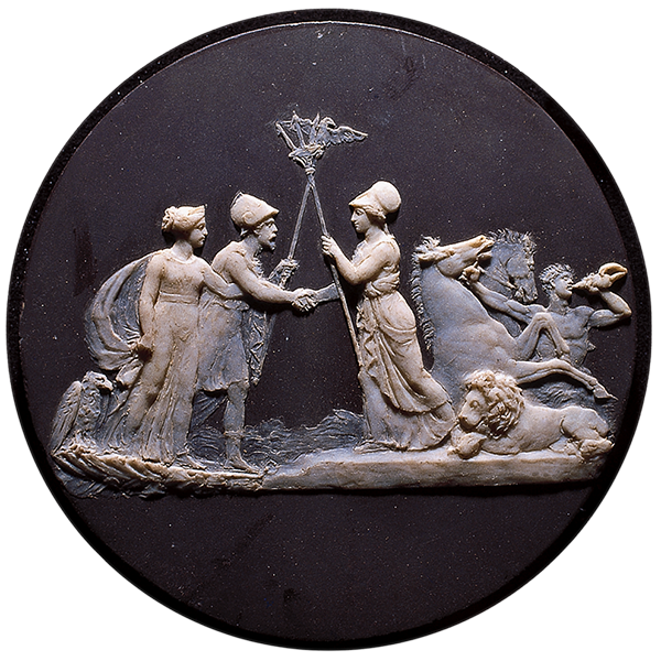 Modello per la medaglia commemorativa della visita dell'imperatore di Francia Napoleone III e della consorte, l'imperatrice Eugenia, in Gran Bretagna, avvenuta nella primavera del 1855. Lavoro non terminato, variante del cat. n. 136
