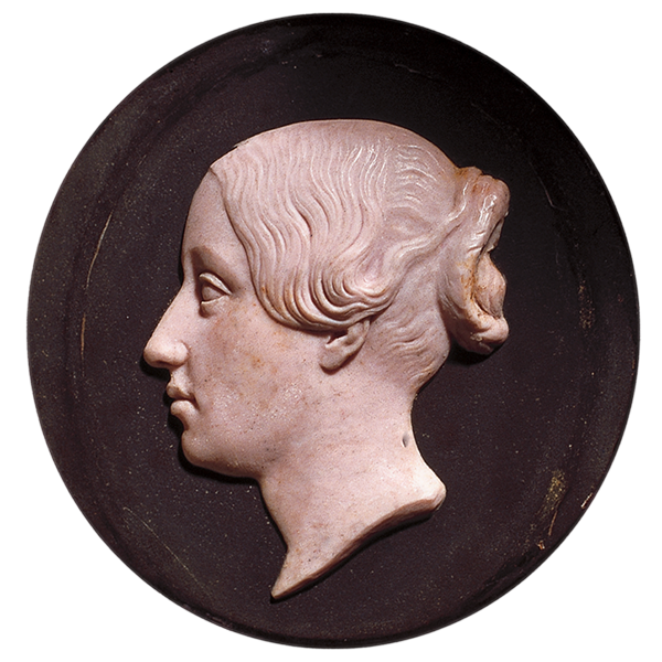Probabilmente si tratta di un ritratto di Elena Pistrucci, figlia quintogenita dell'incisore, rappresentata in un'età più avanzata rispetto ai lavori precedenti. Lavoro allo stato iniziale, con foro sul supporto in ardesia per il fissaggio