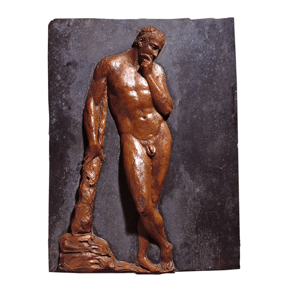 Studio di figura ispirato, pur con varianti, alla statua dell'Ercole Farnese, conservata nel Museo Nazionale di Napoli. Lavoro non completamente terminato
