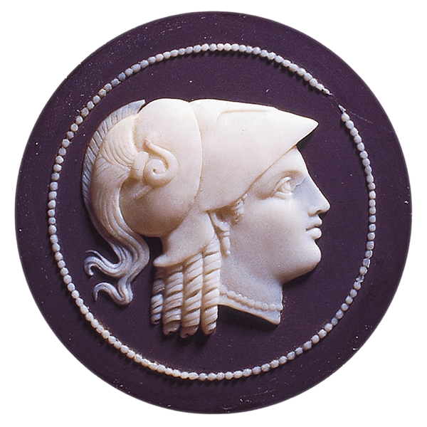 Modello ispirato alla raffigurazione della dea Atena/Minerva presente sul dritto di uno statere aureo di Alessandro Magno. Lavoro ultimato, con foro sul supporto in ardesia per il fissaggio