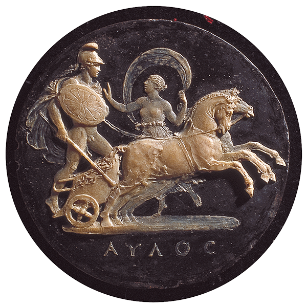 Si tratta del modello per il cammeo in corniola sanguina, già nelle collezioni Poggioli, Sangiorgi e Castellino-Bruschettini e ora disperso. È lo schema definitivo rispetto al cat. n. 284. Lavoro non completamente ultimato
