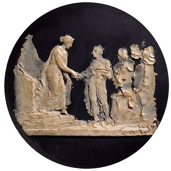 Si tratta probabilmente del primo modello per la medaglia, mai realizzata, destinata alla commemorazione del matrimonio della regina Vittoria, di cui Pistrucci sperava di ricevere la commissione. Lavoro allo stato iniziale
