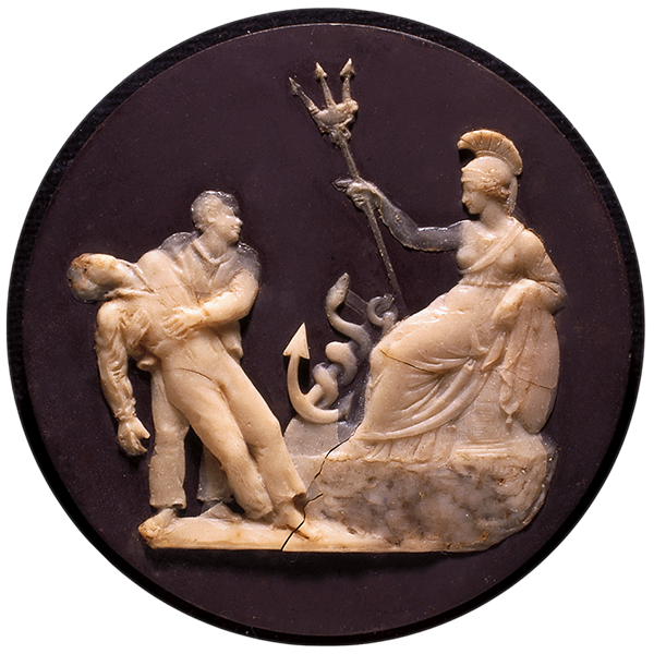 Modello per il rovescio della medaglia in oro destinata, secondo il volere di Sir Gilbert Blane, medico personale di Giorgio IV, del suo successore e di altre personalità, ogni due anni ai due migliori medici della Royal Navy. Lavoro non terminato