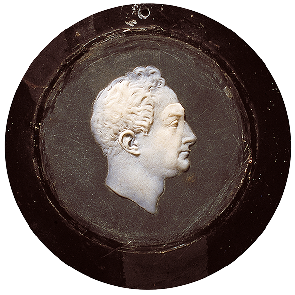 Il ritratto di Guglielmo IV sembra ripreso dalle sculture di Chantrey, eseguite tra il 1829 e il 1831, ma con leggere modifiche operate dal Pistrucci. Foro in alto al centro per il fissaggio. Lavoro ultimato
