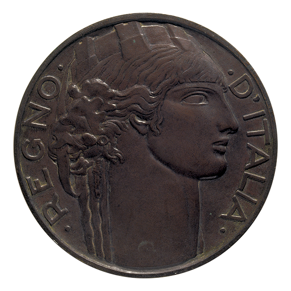 Testa turrita dell’Italia, progetto per il Buono da Lire 2 del 1922, non realizzato, fusione in bronzo