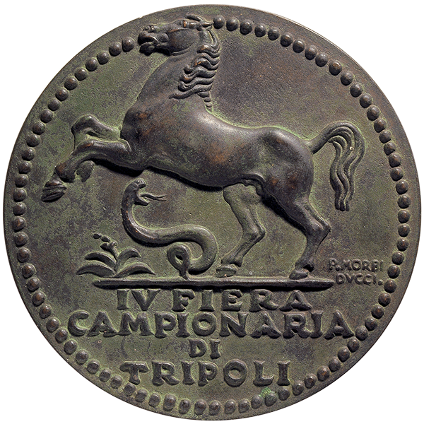 Cavallo impennato attaccato da serpente, modello per la medaglia del 1930 per la IV Fiera Campionaria di Tripoli, fusione in bronzo