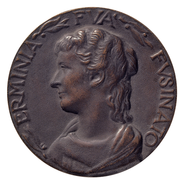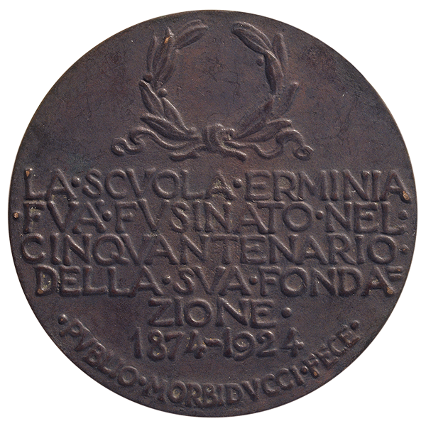 Erminia Fuà Fusinato (1834-1876), per i cinquant’anni dalla fondazione a Roma, in via della Palombella, dell’Istituto Superiore Femminile a lei dedicato, 1874-1924, medaglia fusa in bronzo
