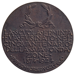LA • SCVOLA • ERMINIA / • FVÀ • FVSINATO • NEL • / CINQVANTENARIO • / DELLA • SVA • FONDA/ZIONE • / 1874 - 1924 (nel campo)