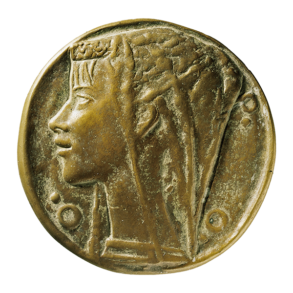 Testa femminile diademata e velata, di profilo a s.; intorno, O . P . O .