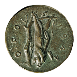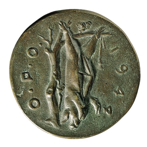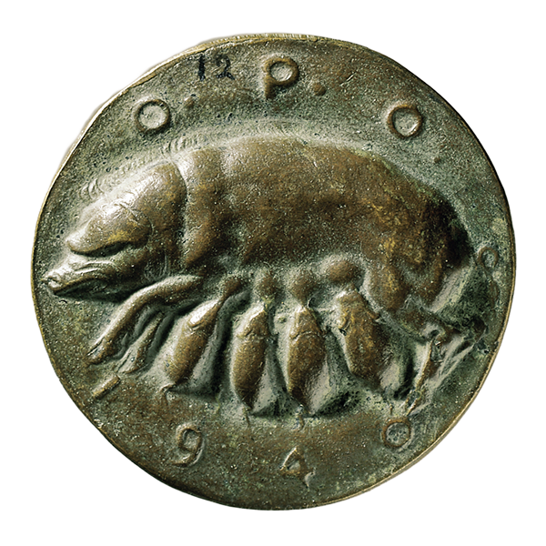 Scrofa, sdraiata a s., allatta quattro maialini; sopra, O . P . O .; sotto, 1940