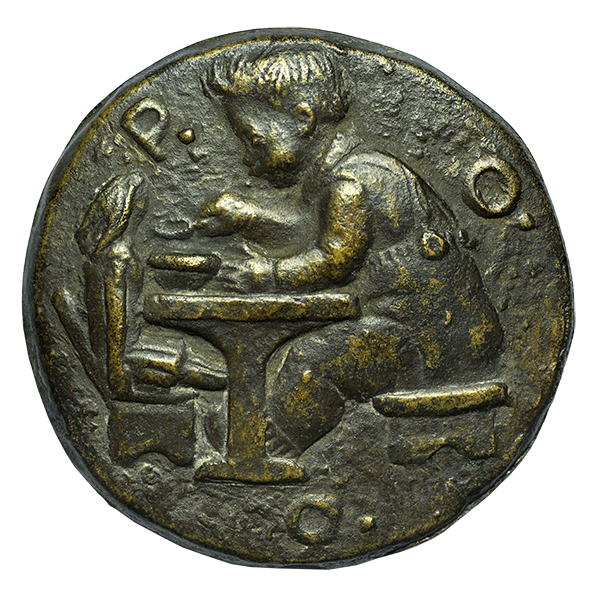 Bambino seduto a s. che mangia; intorno, O . P . O .
