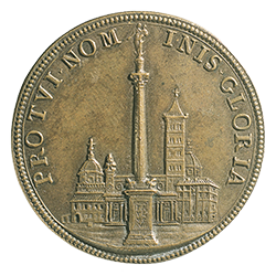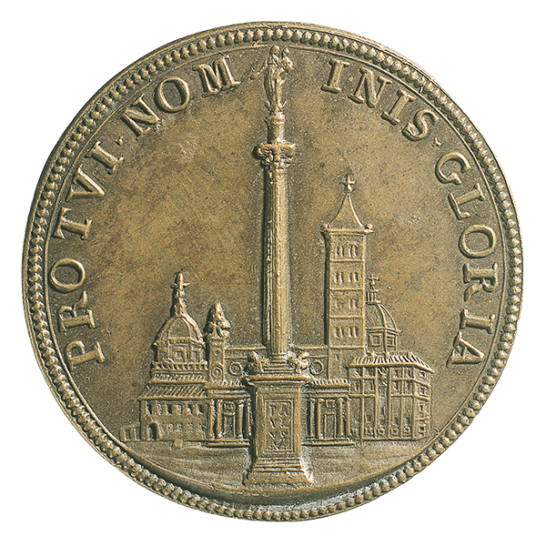 Paolo V (1605-1621). Medaglia in bronzo con al rovescio la facciata della Basilica Liberiana con l’antistante colonna