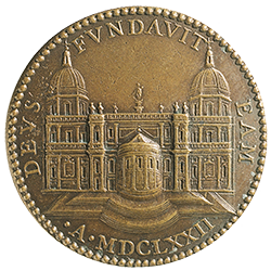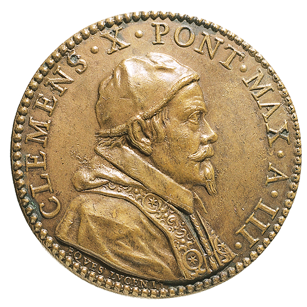 Clemente X (1670-1676). Medaglia in bronzo con al rovescio una veduta della Basilica Liberiana