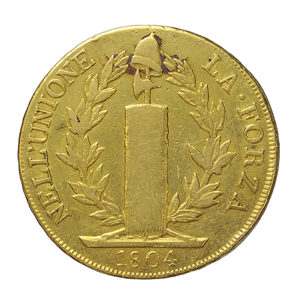 Fascio tra due rami di alloro e sormontato da pileo; sotto, 1804
