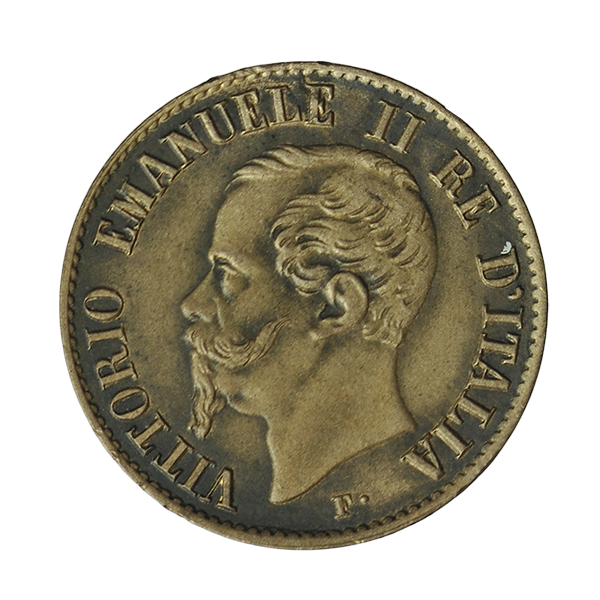 Testa nuda di Vittorio Emanuele II a s.; sotto, F •