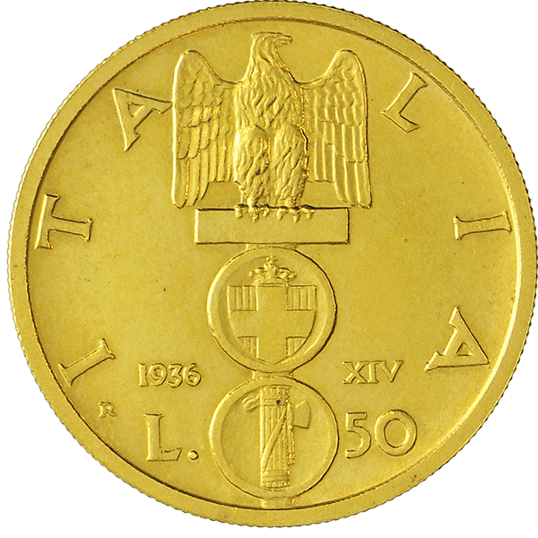 Lire 50 in oro del 1936/XIV, zecca di Roma