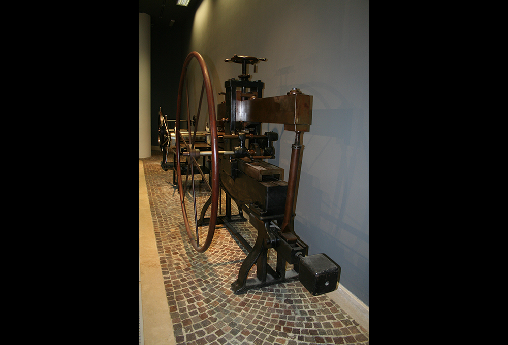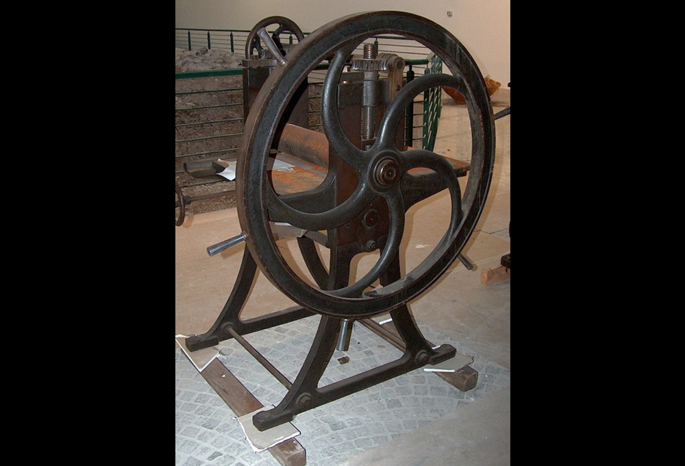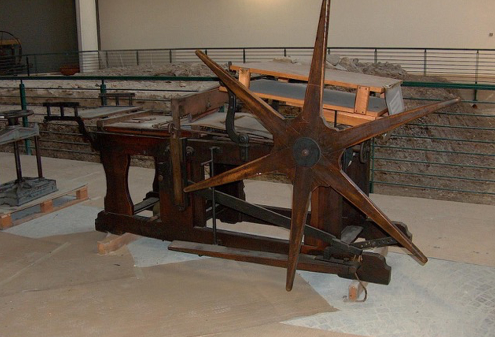 A Gutenberg si attribuisce anche l’ideazione del torchio tipografico che, ai fini dell’esercizio della pressione richiesta, si ispirava al torchio già in uso per la