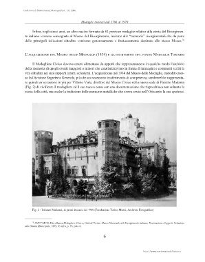 vita cittadina nei suoi rapporti interni ed esterni. L’acquisizione nel 1934 del Museo delle Medaglie, custodito pres-
