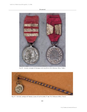 Fig. 46 - ANONIMO, medaglia di Gianduja appesa ad una bacchetta (∅ mm 30) (Collezione Albera, Torino)