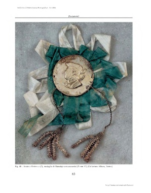 Bollettino di Numismatica Monografia n. 13.I 2006 Documenti Fig. 48 - ANGELO RESTELLI (?), medaglia di Gianduja con coccarda (∅ mm 37) (Collezione Albera, Torino) 83 http://www.numismaticadellostato.it