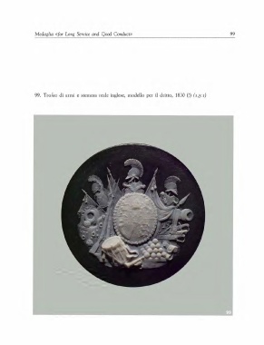 Medaglia «far Long Service and Cjood Conduct» 99 99. Trofeo di armi e stemma reale inglese, modello per il dritto, 1830 (?) (1,5: I)